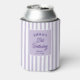 Celebrate a milestone birthday in timeless, preppy style. This elegant 21st birthday can cooler features soft lavender and purple vertical stripes and classic typography, personalized with a name, age, location, and date. Perfect for chic birthday parties, bachelorette weekends, girls trips or destination celebrations, it keeps drinks cold while doubling as a stylish party favor guests will actually use again. A polished, modern keepsake designed for memorable celebrations.