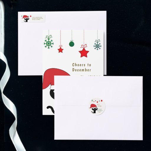Festive Black Cat with Red Santa Hat Designt von E A M