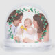 Custom 2 Photo Elegant Holly Wreath Schneekugeln
