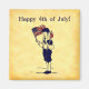 Ein Magnet mit Retrobriefen, die am 4. Juli Happy lesen, und einem Vintagen zeichn eines patriotischen Jungen, der ein Rotfeuerwerk und eine alte US-Fahne auf einem Pergament-Hintergrund von Imitaten hält.