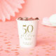 Toast zu 50 Jahren Liebe mit unseren maßgeschneiderten Jubiläumspapiertassen! Elegantes Drehbuch in Goldtönen fügt Ihrer Feier eine Touch Luxus hinzu. Fröhliche Liebe!