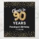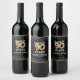 Die eleganten, 90. Geburtstagsparty-Flaschenmarken mit einem stilvollen schwarzen Hintergrund, der in jede beliebige Farbe geändert werden kann, funkelnd Glitzer aus Gold, 90 Goldballons und einer modernen Textvorlage, die leicht zu personalisieren ist.
