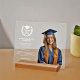 Feiern Sie mit dieser durchsichtigen personalisierten Abschluss-Plakette auf einem stilvollen Holzsteg einen Meilenstein. Diese individuelle Abschluss-Plakette verfügt über ein Abschluss-Foto des Absolventen, einen schönen Abschluss Lorbeerkranz-Emblem und personalisiert mit dem Jahr, Name und Schule. Eine herzliche Gratulationsbotschaft und ein inspirierend Zitat ergänzen dieses sinnvolle Geschenk um eine Touch Gefühl. Diese elegante Plakette eignet sich perfekt zum Geschenken an die Absolventen und ist ein einzigartiger Sake zum Gedenken an ihren besonderen Tag. Ob auf einem Schreibtisch, einem Regal oder einem Kamin, es ist sicher eine hochgeschätzte Erinnerung ihrer akademischen Leistung. Die Plakette ist aus hochwertigem, transparentem Acryl gefertigt und bietet einen modernen, schlichten Look. Der Holzständer verleiht dem Stoff ein natürliches, erdgeschliffenes Element. Diese anpassbare Abschluss-Plakette ist der ideale Weg, um eine hart verdiente Leistung zu feiern, und kann leicht mit Ihrer Wahl des Fotos (vorzugsweise mit dem Hintergrund entfernt), Name und Schule personalisiert werden. Bestellen Sie noch heute, um ein wirklich besonderes, ein freundliches Abschluss Geschenk zu machen!