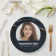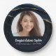 Navy Blau und Gold agate/Marmor "Glückwunsch" Graduierungsparty Custom Foto Papier Teller. Fügen Sie Ihr Bild hinzu und personalisieren Sie es mit Ihrem Namen, Schulnamen und Abschluss Jahr.