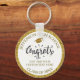 Ein cooler Abschluss-Schlüsselanhänger mit Graduierungsmütze, festlichem Glückwunsch und individuellem Text - fügen Sie Ihre Schule, den Jahrgang und den benutzerdefinierten Text (Name, Datum, Abschluss, etc.) ein, der von einem Imitat mit goldenem Hintergrund gerahmt ist. Ideal zum Abschluss eines Gastgeschenks oder Geschenks.