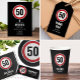 Passen Sie Ihr Alter für die perfekte Geburtstagsparty an. Rotes Rundverkehrsschild mit modernem grafischen Stil. Bitte Karo der passenden Kollektion für KOORDINIERENDE GEGENSTÄNDE. Originale Kunstwerke von PUPSIKU STUDIO. 100% einzigartiges Produkt