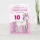 Ein süß-rosa Pony, genau wie Ihre Patchentochter mit der Zahl zehn prangert! Die goldfarbenen Details sind in ihrer Mane und ihrem Schwanz gewebt. Eine perfekte Karte, um Ihrer Patentierin ihren Geburtstag zu wünschen! (Digital gerenderte goldfarbene Farbe)