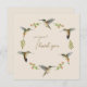 Hübsche Sonderanfertigung Dankeschön-Karte mit einem handgemalten Aquarellkranz botanischer Äste und Allen's Hummingbirds auf cremefarbenem Hintergrund. Der Stil des Schriftartes, die Größe des Schriftartes und die Farbe können durch Klicken auf "Design bearbeiten" geändert werden.