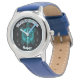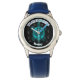 Kinderuhr aus Edelstahl mit blauem Lederarmband
