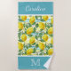 Freuen Sie sich auf Komfort am Strand oder am Pool und lassen Sie sich von diesem farbenfrohen Strandtuch cool und abkühlen. Lassen Sie sich im Sand von diesem schönen, zeitgenössischen, türkisblauen, grünen, gelben und orangefarbenen Zitronenfruchtmuster im gestreiften Aquarellhintergrund überraschen. Mit Raum zum Anpassen oder Personalisieren mit Namen, Monogramm oder Initialen Ihrer Wahl. Verziertes, trendiges, modernes und skurriles Hipster Design für die künstlerische Mode oder die künstlerische Mode-Diva, angesagte Trendsetter, Vintage Retro-Aquarellmalerei oder abstrakter Motivliebhaber.