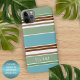 Zeitgenössisch aquamarin blau, schlaugrün, dunkelbraun und mittelbraun, Elfenbein cremefarbene Streifen Art Handy Gehäuse. Mit Raum zum Anpassen mit Namen, Monogramm oder Initialen Ihrer Wahl. Schönes, modernes und cooles Cover für den Trend-erfahrenen und kunstliebenden angesagten Trendsetter, künstlerischer Motiv-Liebhaber, der will, ihr Handy vor Staub und Schmutz, Abnutzung und Tränen zu schützen. Dieses Design ist erhältlich Apple iPhone 6, 7 und 8 Plus, 10 oder X, XR, XS , 11, 12, und 13 Mini und Pro Max Handy Hüllen. Zeigen Sie Ihren persönlichen Stil, sehen Sie modern aus und fühlen Sie sich stilvoll mit einem einzigartigen Design auf einem mobilen Zubehör Ihrer Wahl.