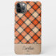 Moderne beige, taupe braun, schwarz und herbstlich Kürbisorange Tartan kariert, und ein Imitat Leder Textur Hintergrund. Mit Raum zu personalisieren oder mit einem Namen Monogramm oder Initial Ihrer Wahl. Schönes, modernes und cooles Cover für den Trend-geschickten und kunstliebenden angesagten Trendsetter, künstlerischer Motif-Liebhaber, der will, ihr Handy vor Staub und Schmutz, Abnutzung und Tränen zu schützen. Dieses Design ist erhältlich in Apple iPhone 6, 7, und 8 Plus, 10 oder X, XR, XS, 11, 12, 13, 14 Mini, 15 Plus, und Pro Max Handy Hüllen. Zeigen Sie Ihren persönlichen Stil, sehen Sie modern und trendig aus und fühlen Sie sich stilvoll mit einem einzigartigen Design auf einem mobilen Zubehör Ihrer Wahl.