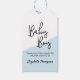 Persönlich gestalten Sie diese Geschenkmarken für eine blauen Babydusche. Moderne Diagonal Form und Schriftart Skript. Passen Sie den Gruß und Namen an, erfreuen Sie sich an ihrem Baby Duschtag.
