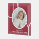 Dieses stilvolle Baby Boy's First Christmas Foto Ornament ist mit dem Wort JOY auf einem maronroten Hintergrund dekoriert. Einfach mit Foto, Name und Jahr anpassbar.