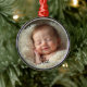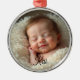Celebrate your little one’s first Christmas with this customizable keepsake ornament. Featuring a serene sleeping baby nestled in soft warmth, this round metallic ornament is perfect for adding your own photo and baby’s name. A gentle tribute to new beginnings, it makes a heartfelt gift for new parents and a timeless treasure for the tree.