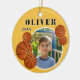 Maßgeschneiderte Basketball Ball Yellow Sports Foto Keramik Ornament. Ornament mit Basketballbällen, individuelle Name und Foto in einem runden Rahmen.
