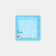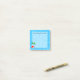 Custom Post-it-Notizen mit Retrobriefen und lustige Strand- oder Schwimmbecken themed Kunst eines roten Beachball, grüner Sonnenschirm, Feriensandalen und Sonnenöl auf einem wasserblauen Hintergrund mit Wellen.