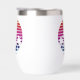 Cute custom beach wine tumbler for a destination wedding favor or family island home near the ocean. Cool personalized favor or gift featuring tropical palm tree and pretty pink and blue and your name underneath the coastal horizon.