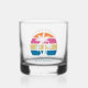 Eine wunderschöne kleine Brille mit Whisky-Gläsern und einem tropischen Sonnenuntergang für einen Empfang auf der Insel. Niedliches personalisiertes Weinglas mit hübschem Rosa und Blau hinter niedlichen Palmen für eine Küstenbraut und Bräutigam Sake Geschenk für Brautparty und Gäste.