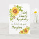Eine elegante Beileid-Karte mit gelben, blumengeschmückten Sonnenblumen. Ein schöner Weg, um zu sagen, sorry für den Verlust Ihrer Tochter. Personalisieren Sie, indem Sie den Namen und die Meldung innerhalb des Fensters ändern.