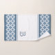 Schönes klassisches zeitgenössisches, weißes und graublaues marokkanisches Quartett Gitter Fantasie Muster. Mit Raum zum Anpassen oder Personalisieren mit Monogramm oder Initialen Ihrer Wahl. Verziertes, skurriles und funky cooles Design, das auf einer Vielzahl von lustigen, klassischen und modischen, passenden Bädern und dekorativen Pullroom Dekorakzenten und Accessoires sowie niedlichen, modernen Strandessentials für den Trend-erfahrenen und kunstliebenden angesagten Trendsetter, Vintagen Retro-Look oder abstrakten geometrischen Motiv-Liebhaber zur Verfügung steht.
