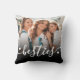 Create a custom keepsake with this personalized square pillow, featuring your favorite photo printed on both sides. “Besties” appears across the bottom in flowing script, accented by small heart details, with a subtle black gradient behind the text to make it stand out.