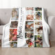 A heartfelt photo collage blanket featuring multiple family moments, children, and warm lifestyle portraits. A loving personalized gift perfect for celebrating a special friend.