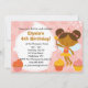 Fun Fee Prinzessin Geburtstagsfeier Einladung mit einem kleinen Mädchen in Orange mit Flügeln gekleidet, eine Tiara, ein Zauberstab und Kuchen mit Sprinklen auf einem rosa Polka-Punkt Hintergrund. Vollständig anpassbar.