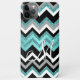 Zeitgenössischer weißer, schwarzer und Imitat glänzender aqua türkis Glitzer Zickzack zag Streifen Muster. Mit Raum zu personalisieren oder mit einem Namen Monogramm oder Initial Ihrer Wahl. Schönes, modernes und cooles Cover für den Trend-geschickten und kunstliebenden angesagten Trendsetter, künstlerischer Motif-Liebhaber, der will, ihr Handy vor Staub und Schmutz, Abnutzung und Tränen zu schützen. Dieses Design ist erhältlich in Apple iPhone 6, 7, und 8 Plus, 10 oder X, XR, XS, 11, 12, 13 Mini, 14, 15 Plus, und Pro Max Handy Hüllen. Zeigen Sie Ihren Stil, sehen Sie in der Mode und fühlen Sie sich stilvoll mit einem einzigartigen Design auf einem mobilen Zubehör Ihrer Wahl.