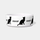 Das ist die perfekte Katzenfutterschale mit einer schwarzen Katze, ganz herum, besonders wenn man sich mit dem Namen einer eigenen Katze nach Belieben umsieht.