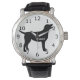 Uhr, Klassische Damenuhr mit schwarzen Lederarmband