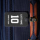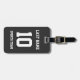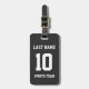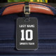 Name, Nummer und Schlagschatten sind individuell einstellbar, sodass Sie ein sportlich aussehendes und dennoch nützliches Gepäckanhänger einzigartig machen können, das Ihren Teamfarben entspricht. Schwarzer Hintergrund.
