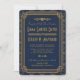 Diese Einladungen für Hochzeitsfeiern sind mit einer blauen und goldenen Farbpalette, einem geometrischen Rahmen, geometrischen Mustern und anderen stilistischen Details inspiriert, die alle durch Art Deco und die rauschenden Zwanziger Jahre. Sie können die Textfelder des Beispiels nach Ihren Wünschen anpassen.