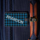 Schönes zeitgenössisches schwarz-blaues Tartan-Muster. Mit Raum auf der Vorder- und Rückseite, um mit Namen, Monogramm oder Initialen Ihrer Wahl personalisieren oder anpassen zu können.