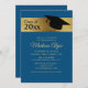 Elegante königsblaue und goldene Graduiertenparty mit schwarzer Graduierhaube. Angepasst mit Ihren Namen und Party-Informationen. Kontaktieren Sie mich, um Hilfe bei Ihren Anpassungen zu erhalten oder um zusätzliche Matching oder Koordination von Zazzle Produkten für Ihre Veranstaltung(en) zu beantragen.