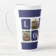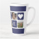 Benutzerdefinierte blaue Foto latte Tasse. Schenken Sie Ihren Lieben ein schönes Geschenk, indem Sie dieses Foto verspätete Tasse personalisieren. Perfektes Geschenk für Geburtstage oder Feiertage. Fügen Sie einfach Ihre wertvollen Fotos hinzu, um ein einzigartiges Geschenk zu machen, das sicher von Ihrer anderen Hälfte gut aufgenommen wird. Die Farbe der Tasse kann beliebig farblich angepasst werden. Für individuelle Anfragen kontaktieren Sie uns bitte über Zazzle Chat.