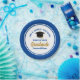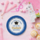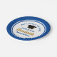 Diese modernen Teller der Blauen und Golden Custom Graduation Party sind mit klassischer Typografie Ihrer Universität oder Uni für die Klasse von 2025. Passen Sie mit Ihrem geschlossen Jahr neben dem schicken handgeschriebenen Drehbuch und schwarzen Grade-Cap für große personalisierte Gratulationen Graduieren Party Dekor.