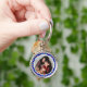 Custom Merry und Festive Blue Weihnachten Foto Picture Frame Round Geschenk Schlüsselanhänger für die besten Freunde. Ein farbenfroher und leuchtend kreisförmiger Dekor für Ihren Winter und eisblauen Dekor. Das Rahmendesign ist ein jolly geometrisches Abstraktionsmuster, das traditionelle festliche Farbblockdesigns annimmt. Im Winter sind die Farben eisblau und schneeweiß, mit dunkelrotbraunen Farbtupfern. Personalisieren Sie es, indem Sie das Foto mit Ihrem eigenen, für ein frühes Geschenk für Familie und Freunde, um Weihnachten zu feiern. Zieh deine Yuletide-Erinnerungen eines Winterwunderlandes. Eine tolle Möglichkeit, Ihre Schlüssel behalten, organisierte die für die besten Freunde, Brüder und Schwestern, oder Paare. Ein preisgünstiger Keyring-Sake für Feiern.
