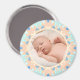 Hübsch Circular Custom Blue Mother’s Day New Mum Mummy Baby Girl Boy Foto Gift Magnet. Im Frühling und im Sommer die Farben von frisch pastellblau und beruhigend pfirsichfarben. Ein frühlings- und sommerzeitlicher Rahmen umgibt das Bild in der Mitte. Ersetzen Sie das Foto durch ein Bild Ihres eigenen wunderschönen neuen Babys, Mädchens oder Kindes. Geben Sie als Geschenk für eine neue Mutter am Muttertag. Mama, Mama, Mam, Mama, Mama, Mama und Mutter werden Liebe haben, diesen Geschenkmagneten auf ihren Kühlschrank zu bringen, um die Geburt ihres neuen Kindes zu feiern. In schönen, hellen und hellen Farben.