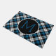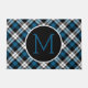 Schönes zeitgenössisches aquamarines blau-schwarz-weißes Tartan-Muster. Mit Raum zum Anpassen oder Personalisieren mit Ihrem Monogramm. Verziertes whimsical Hipster Design für die stilvolle künstlerische Mode oder künstlerische Mode Diva, beliebter angesagter Trendsetter, Vintages Retro, Nouveau Deko oder moderne abstrakt geometrische Motiv Liebhaber. Niedliche, klassische und modische Dekoration Akzente für diejenigen, die ihre Master- oder Kinderschlafzimmer, Kinderzimmer-, Wohn- oder Familienzimmer, Frauenhöhle, Uni-Studiowohnung, Studio oder Appartement, Strandhaus, Hütte, Blockhütte, RV oder Camper, See- oder Flussurlaub-Zuhause dekorieren.