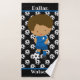 Individuelle Name Badetuch für Kinder mit einem Jungen, der Fußball spielt mit Fußball-Muster Hintergrund.