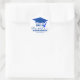 Der Aufkleber für den blauen und weißen Abschluss verwendet einen männlichen Schriftart, um ihn für einen Typ oder einen Jungen geeignet zu machen. Es beginnt mit einer Graduationskappe in zwei Blautönen. Die Klasse von und der Abschluss Jahr ist knapp unter. Dann ist der Name des Absolventen und seine High School oder Uni unten. Der Name des Absolventen ist in zwei blauen Schriftart geschrieben. Der Vorname befindet sich in einem modernen Script-Schriftart. Leicht zu ändern den Text inklusive Abschluss Jahr.
