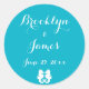 Maßgeschneiderte blaue (scuba blue) und weiße Seepferd Hochzeitsaufkleber mit individualisierbarem Text