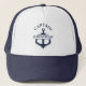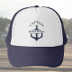 Stylish trucker hat featuring a bold anchor design and customizable captain name. Perfect for boat lovers, sea captains, or nautical-themed gifts and events.