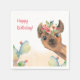 Eine Aquarellbild eines Lamas schmückt diese personalisierten Geburtstagsnapkins.