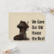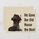 Die lustige bewegende Ankündigungskarte sagt: "Wir haben unserem alten Haus den Stiefel gegeben." Auf der Rückseite können Sie Ihren Text mit Ihrer neuen Adresse, Telefonnummer und E-Mail personalisieren. Sie können unnötige Felder löschen.