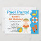 Das lustige Sommerpool-Party für Ihren kleinen Jungen mit dieser farbenfrohen Geburtstagsfeier-Einladung ankündigen. Vollständig anpassbar.