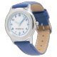 Custom Boy Name Stainless Steel Blue Leather Strap Kids Watch
