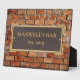 Fügen Sie Ihre Sehenswürdigkeit-, Geschäfts- oder Gedenkdetails zu dieser Tischplatte hinzu, die wie eine Kopie einer Bronzedenkmäler an einer Ziegelwand aussieht.