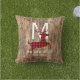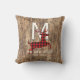 Individuell gestalteter Innenhof werfen Kissen mit roten und schwarzen Buffalo Lumberjack Klan Schachbretter karierte tartan Muster Hirsche mit Anbetern Silhouette Bild auf einem zeitgenössischen holzgetönten Hintergrund. Mit Raum zum Anpassen oder Personalisieren mit Familiennamen Monogramm Ihrer Wahl.